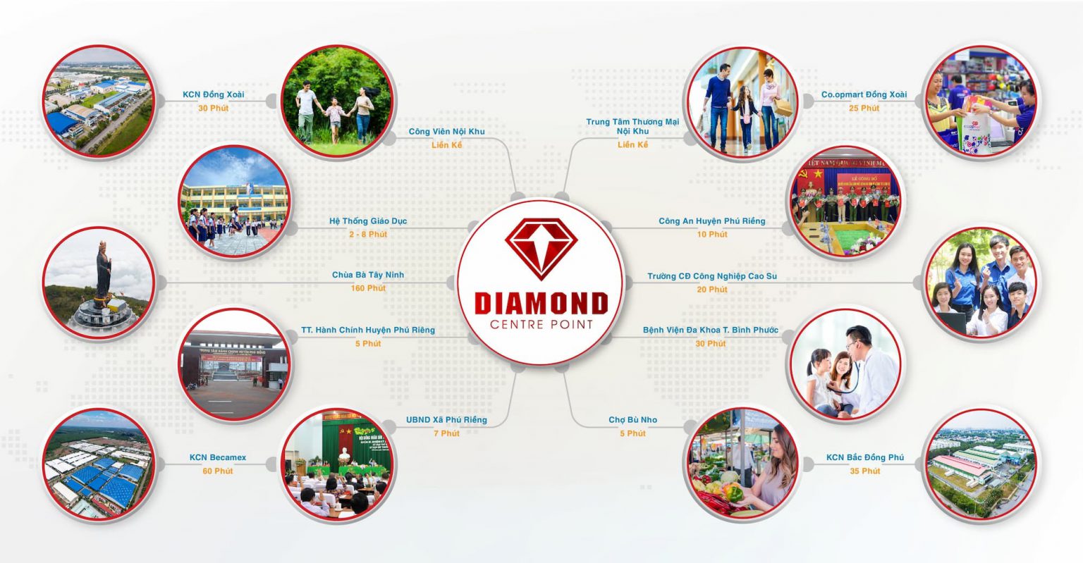 Diamond Centre Point với vị trí đắc địa, được thiên nhiên ban tặng bao quanh bởi những tiện ích hiện hữu, những khu rừng cao su thiên nhiên.